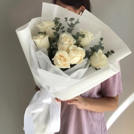 Белые розы в красивом оформлении «Любимой» маме , сестре, подруге , коллеге, на день рождения
