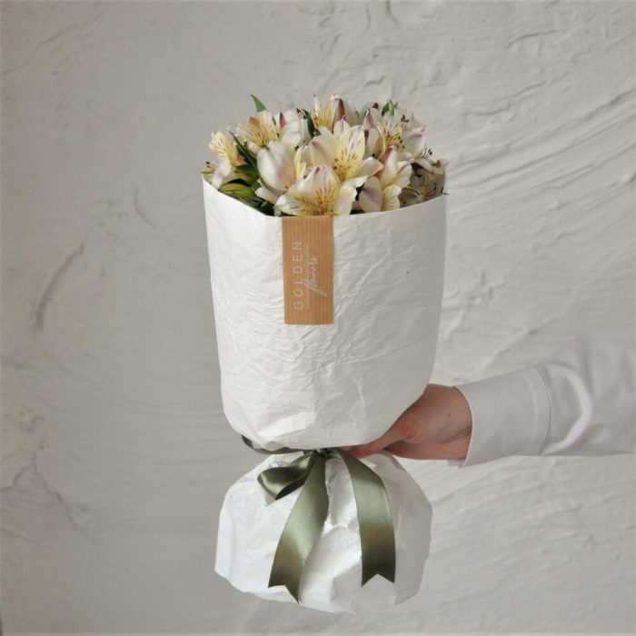 Белый мини букет из альстромерий