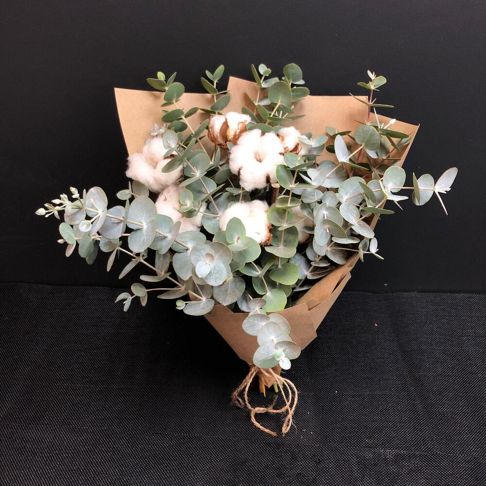 Букет из ароматного эвкалипта и белоснежного хлопка