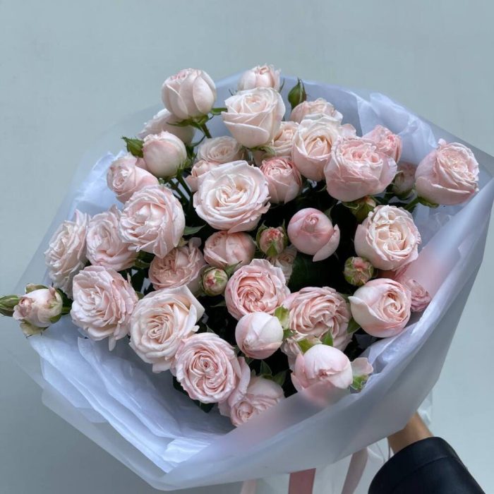 11 кустовых пионовидных роз в дизайнерской упаковке