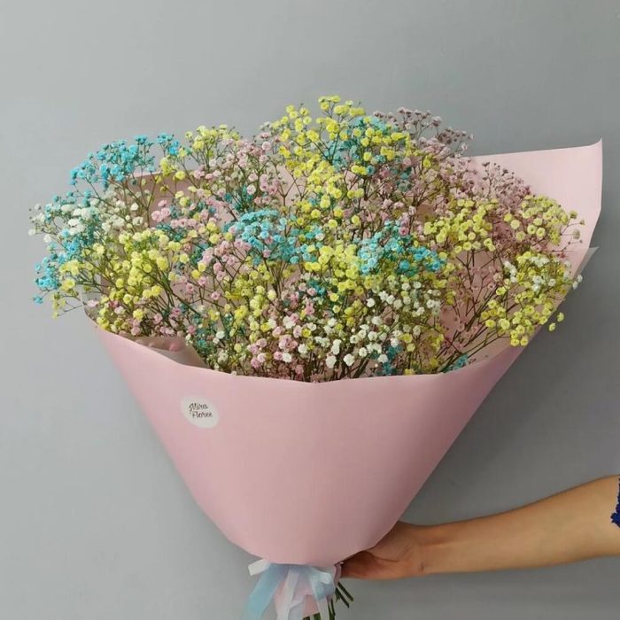 Букет из цветных гипсофил а стильной упаковке