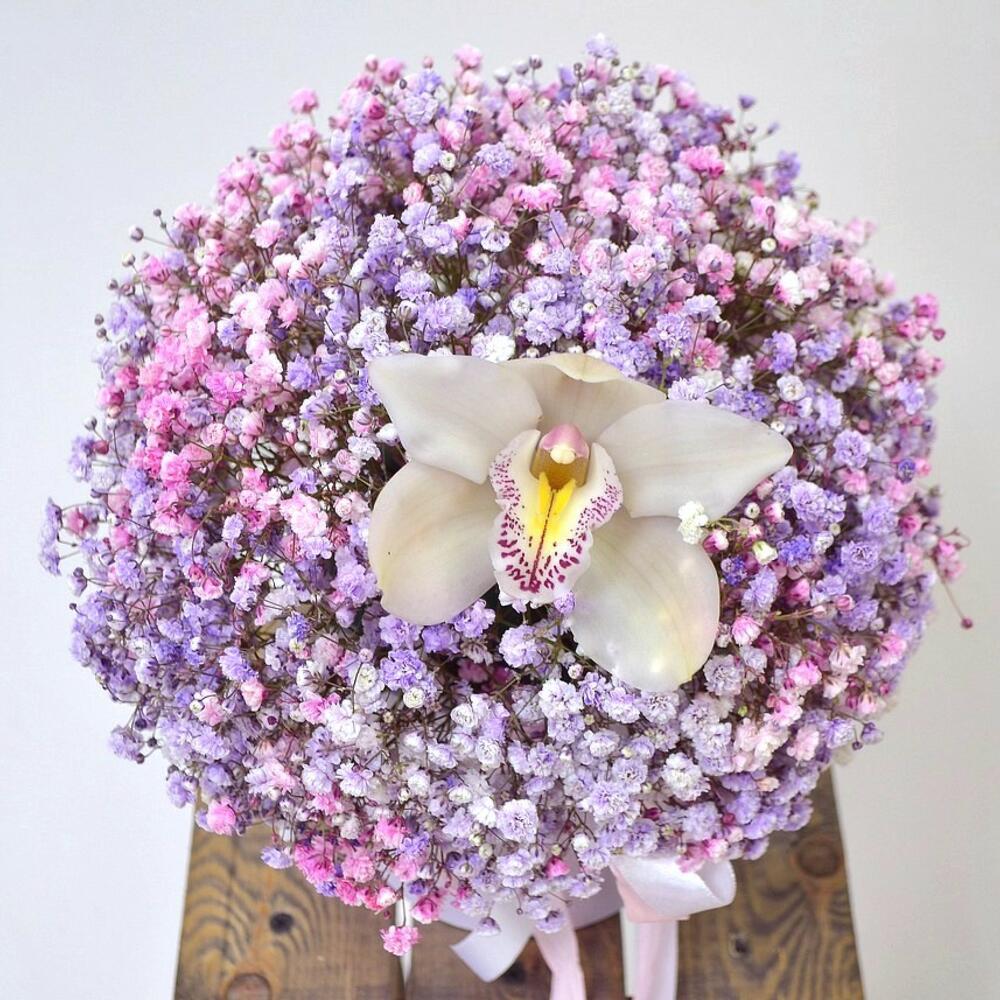 Гипсофила – 7 шт.Шляпная коробка – 1 шт.орхидея – 1 шт.