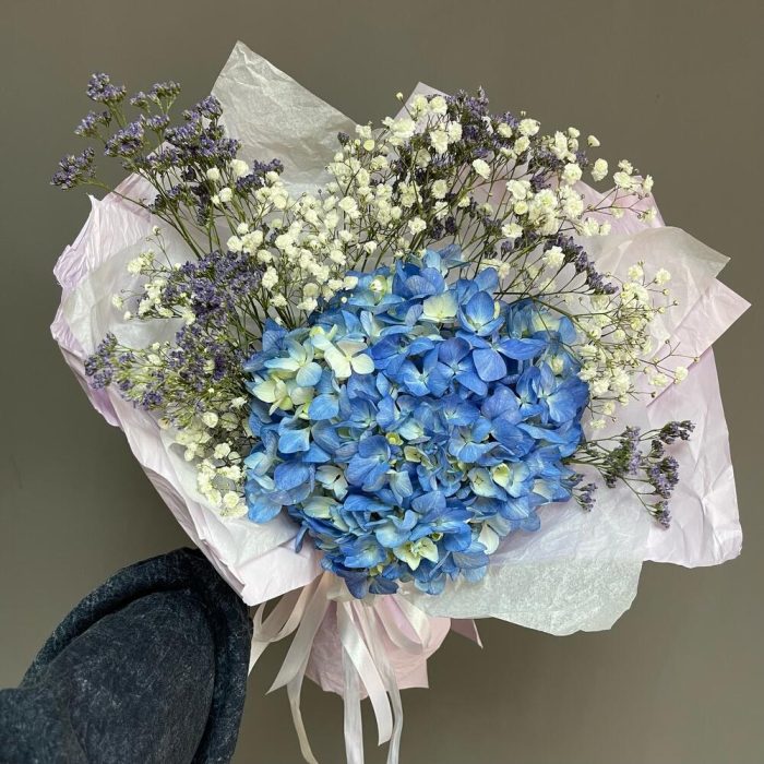 Гипсофила – 2 шт.Гортензия – 1 шт.Лимониум – 3 шт.Упаковка дизайнерская – 1 шт.
