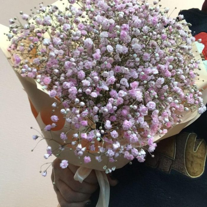 Лента – 1 шт.Упаковка дизайнерская – 1 шт.гипсофила радужная ветка – 5 шт.
