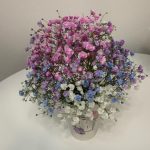 “Сиреневый туман” – композиция из гипсофилы в шляпной коробке