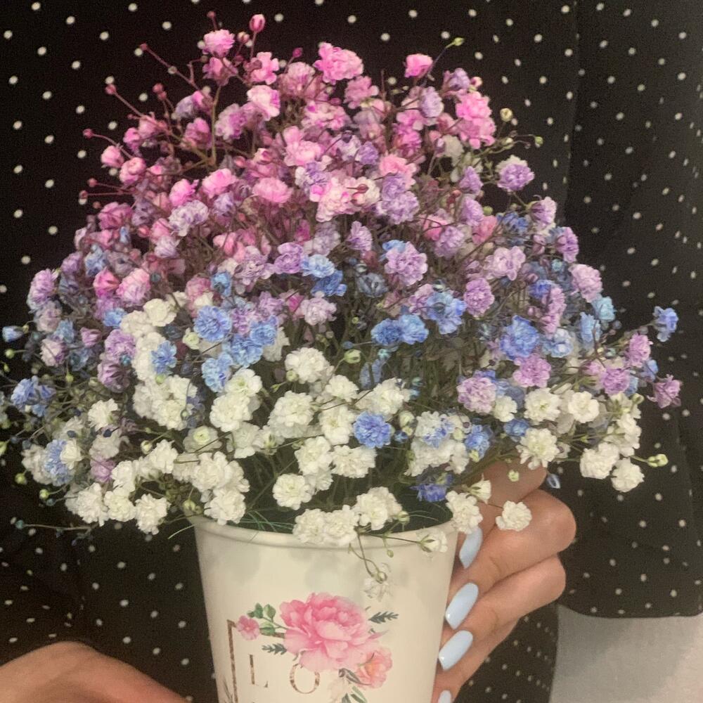 Комплимент из яркой гипсофилы в стаканчике «Счастье»