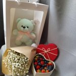 Мишка с ягодами и цветами в общей упаковке
