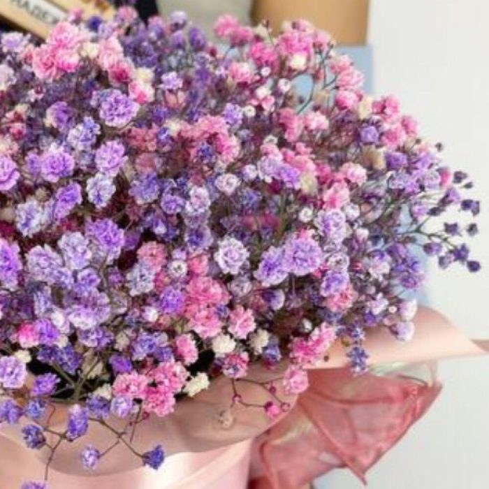 Нежная композиция из цветной гипсофилы в коробке