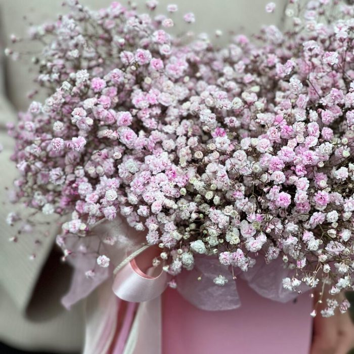 Нежная, розовая гипсофила в коробке