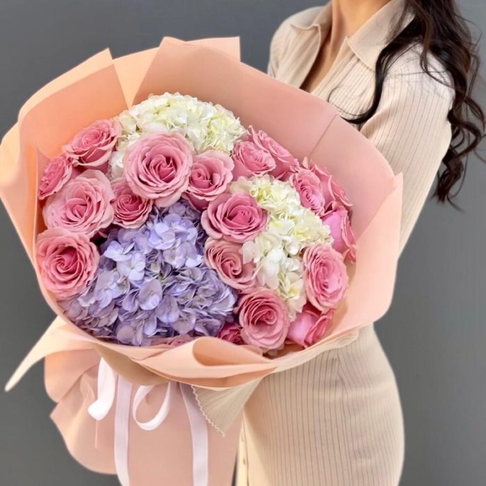 Гвоздики, Кустовые розы, Пионовидные розы, Розы