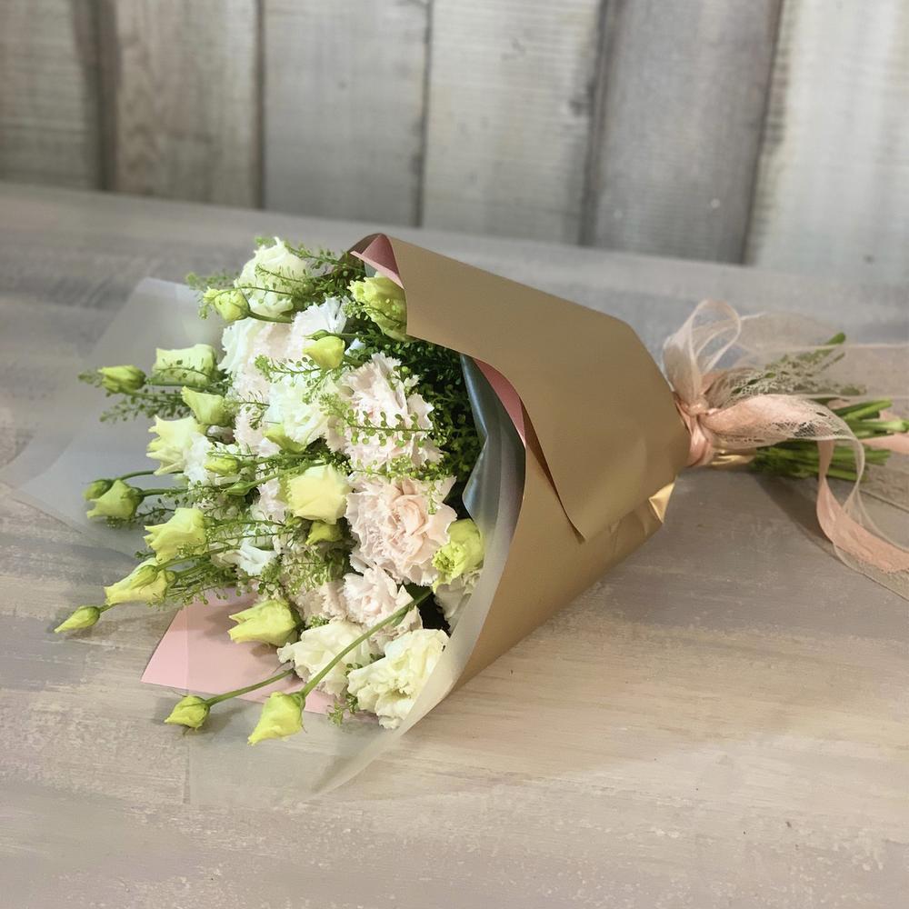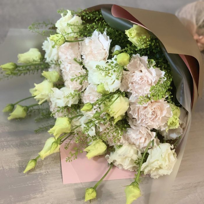 диантус премиум “брют” – 10 шт.эустома махровая “алиса вайт” – 5 шт.Гринбелл – 10 шт.Подарочная упаковка – 1 шт.