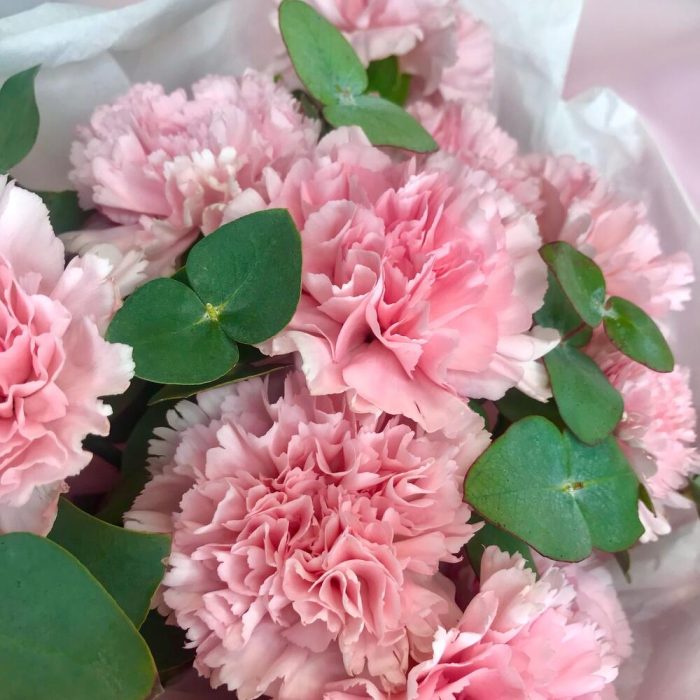 Нежно-розовой букет с диантусом и эвкалиптом