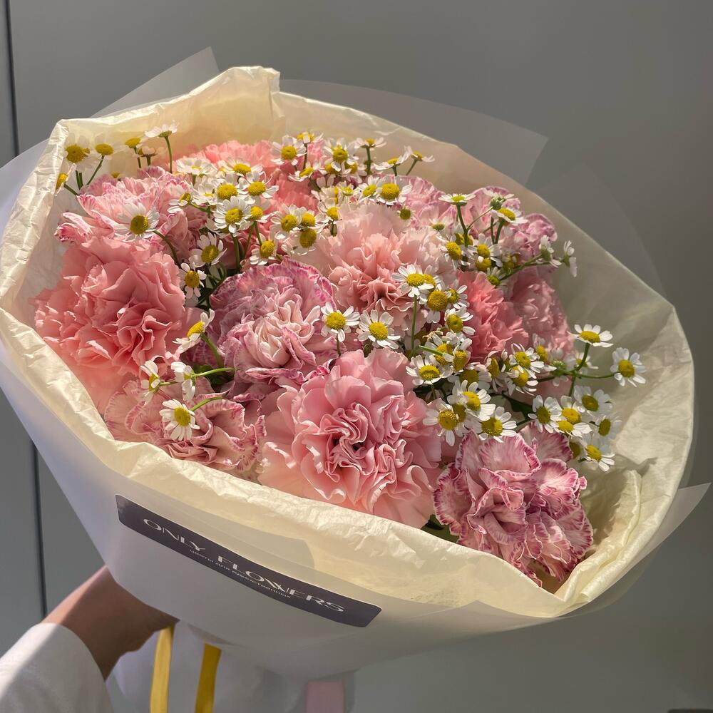 Диантус – 15 шт.Матрикария – 4 шт.Упаковка дизайнерская – 2 шт.