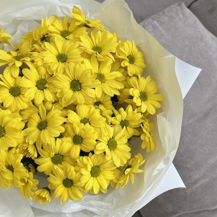 Хризантема Ромашковая – 7 шт.пленка матовая белая – 1 шт.тишью белая хрустящая – 1 шт.
