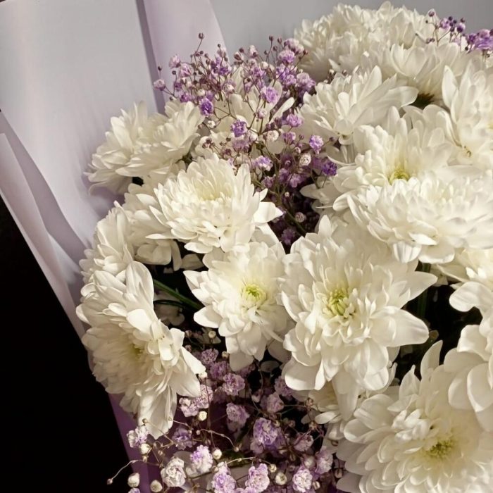 Гипсофила – 2 шт.Хризантема кустовая – 7 шт.Упаковка дизайнерская – 1 шт.