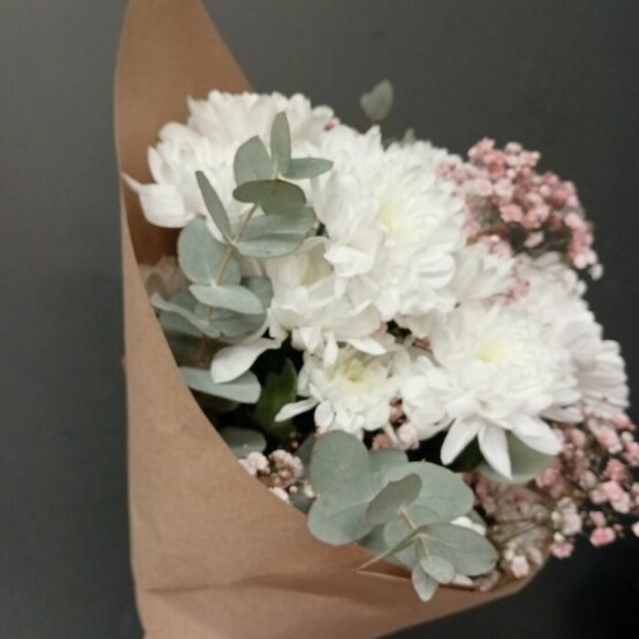 Гипсофила – 2 шт.Хризантема кустовая – 3 шт.Упаковка дизайнерская – 1 шт.зелень декоративная – 1 шт.