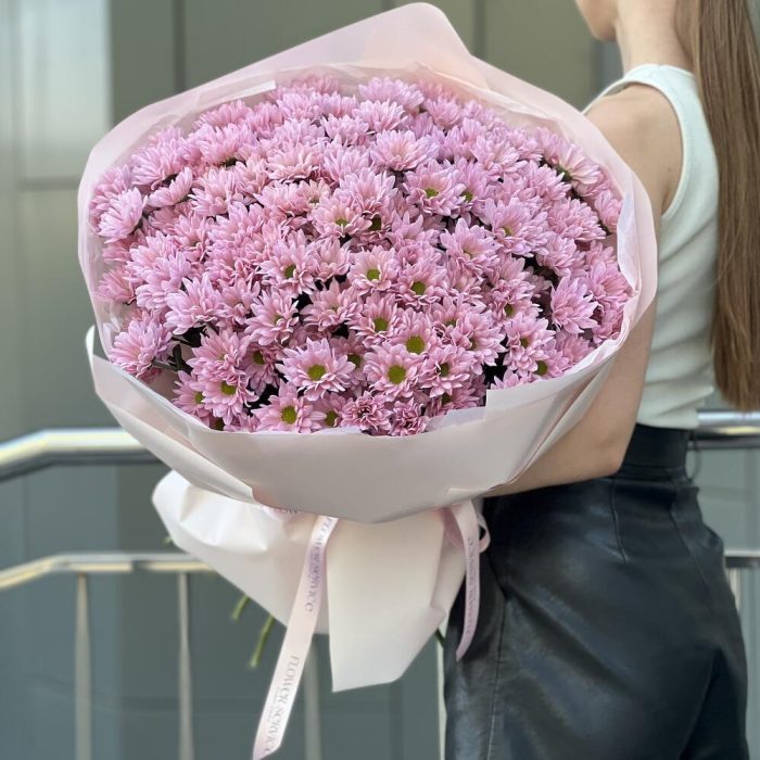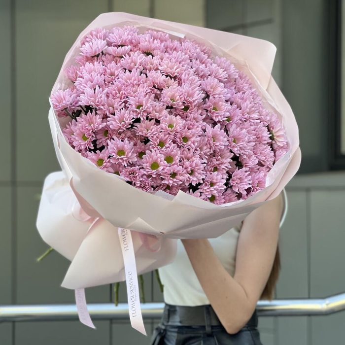 Букет из 25 веток нежно розовой хризантемы в оформлении!