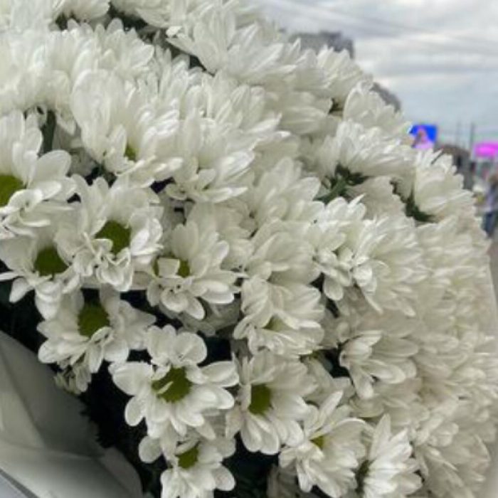 Крупная охапка стойких кустовых хризантем в современном оформлении удивит получателяУважаемые покупатели! Пожалуйста обратите ваше внимание на размер букета при заказе! Он учитывается вместе с упаковкой Чтобы наши прекрасные букеты дольше радовали получателя рекомендуем вам: ⭐Обновить срез букета перед тем, как поставить его в воду⭐Ставить цветы в прохладную проточную воду ⭐Меняйте воду в вазу каждый день⭐Не забывайте подрезать цветы, перед тем, как ставить их в воду⭐Не ставить у отопительных приборов и на сквозняке Фирменный стиль наших букетов разработан специально так, чтобы упаковку не нужно было снимать, так как она придаёт целостность букету и прекрасно держится в вазе