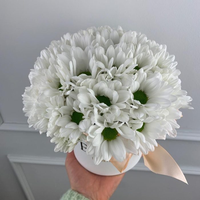 Хризантема кустовая – 5 шт.Лента атласная – 1 шт.Оазис флористический – 1 шт.цилиндр 12 см – 1 шт.