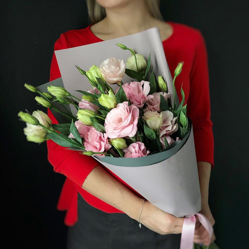 Лизиантус – 9 шт.Упаковка дизайнерская – 1 шт.Лента атласная – 1 шт.
