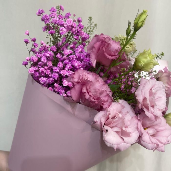Эустома – 4 шт.Тласпи – 2 шт.Гипсофила – 2 шт.