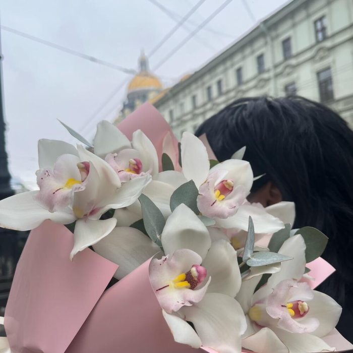 Лента атласная – 2 шт.удлинитель для орхидеи – 7 шт.Упаковка корейская пленка – 1 шт.премиум орхидея цимбидиум – 7 шт.