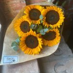 Букет из 5 подсолнухов и эвкалипта в стильной упаковке “Эбин Купер”