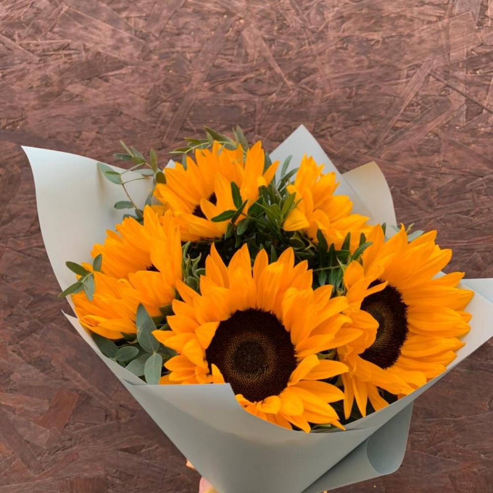 Подсолнух – 5 шт.Эвкалипт – 3 шт.Упаковка дизайнерская – 2 шт.