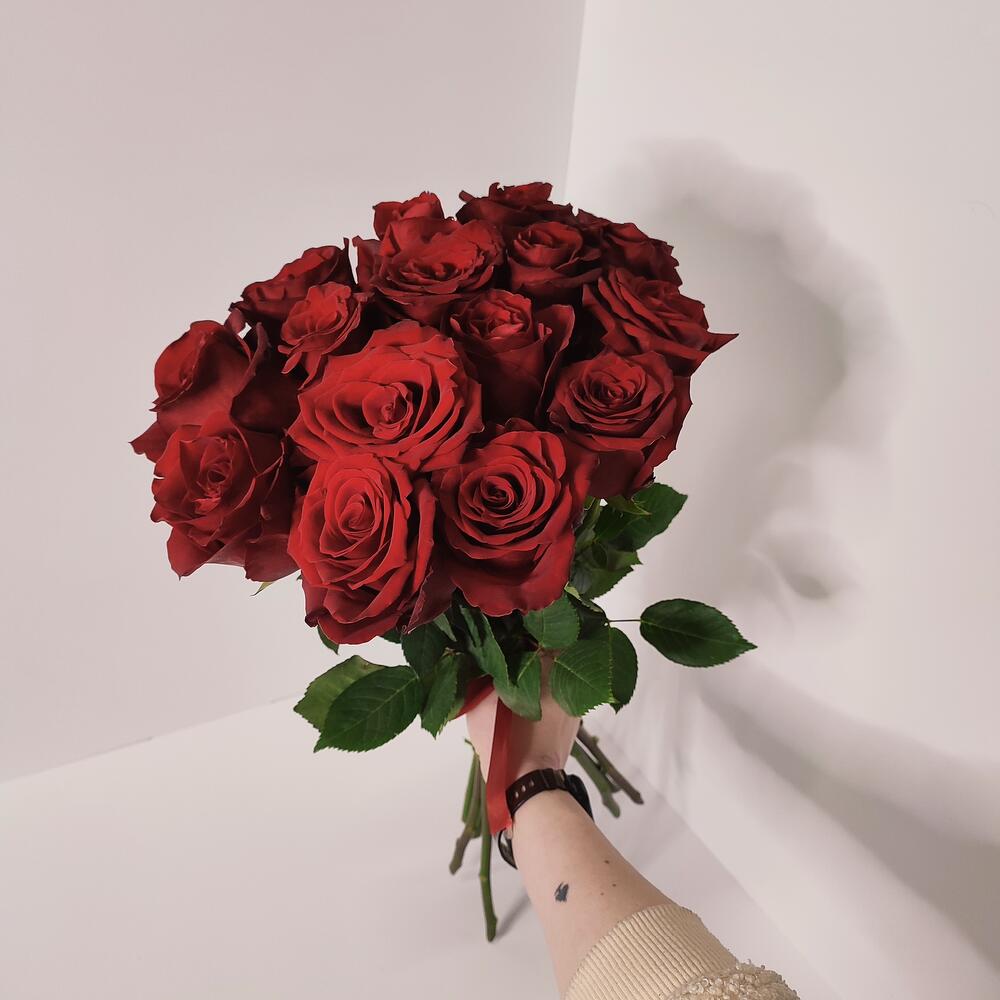 Роза эквадор 50 см – 15 шт.Лента атласная – 1 шт.Кризал – 1 шт.