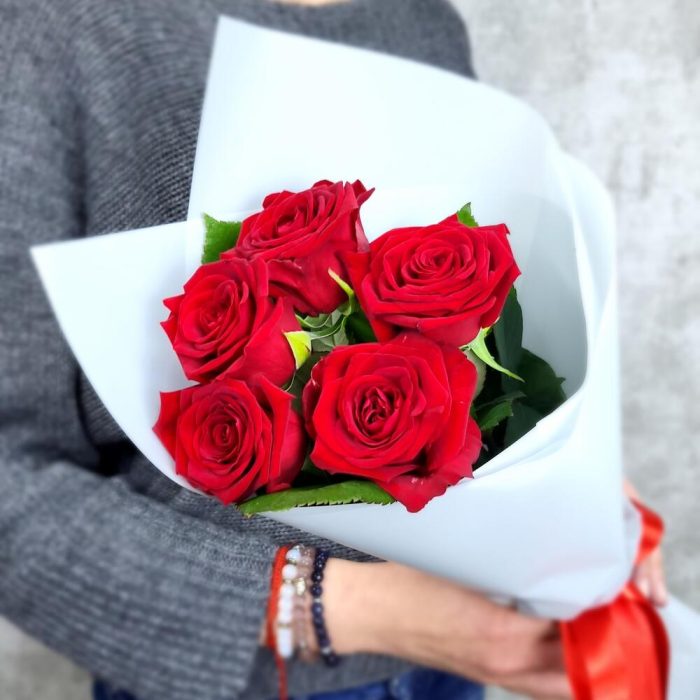 5 красных французских роз