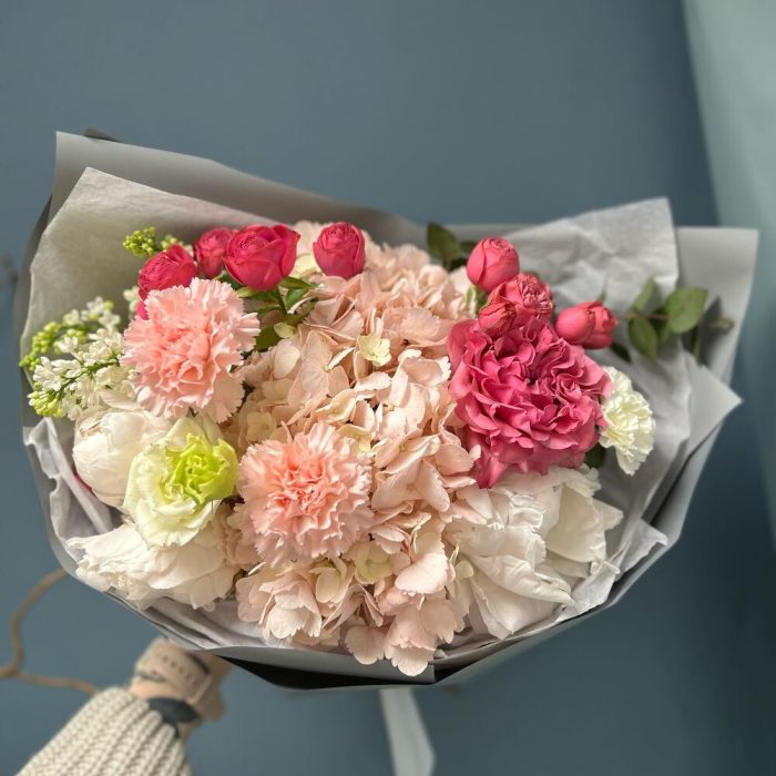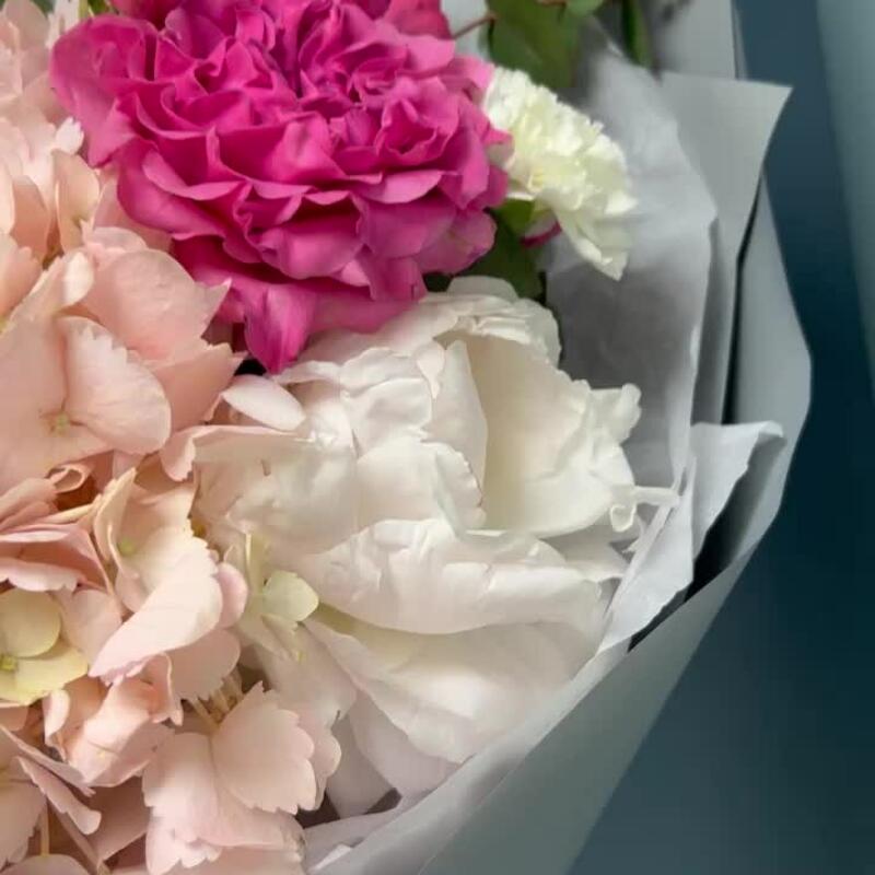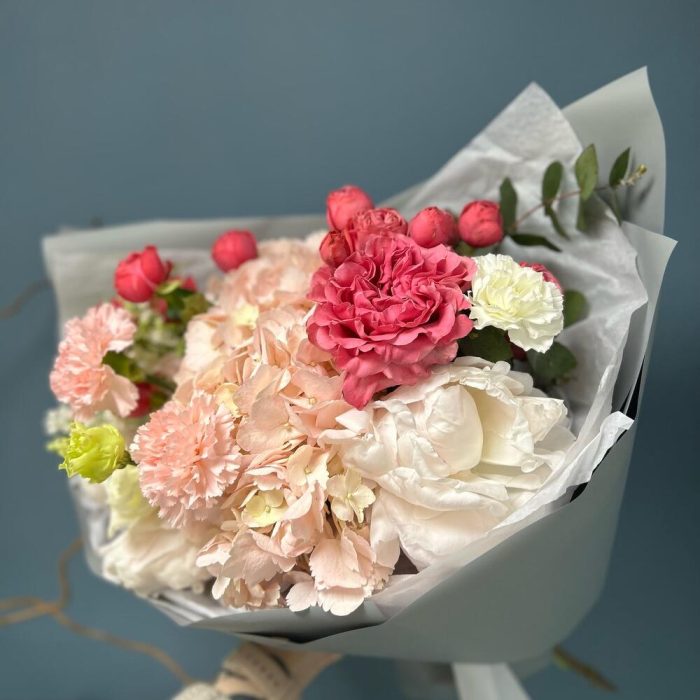 “Эвкалиптическая роскошь” гортензия и пионовидная кустовая роза