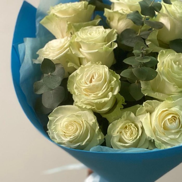 Букет из 11 белых роз и эвкалипта