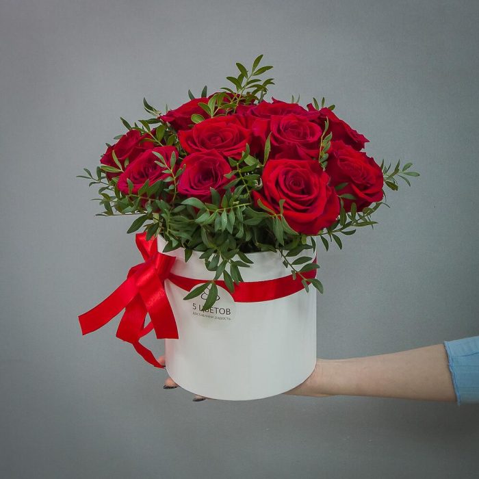 розы – 15 шт.Шляпная коробка – 1 шт.