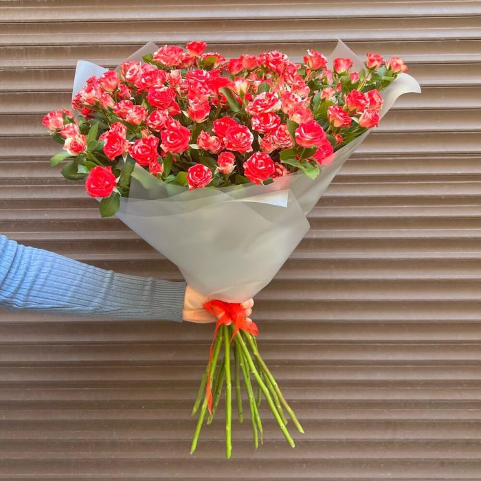 Лента – 2 шт.Пленка матовая – 3 шт.фаервокс роза кустовая – 15 шт.