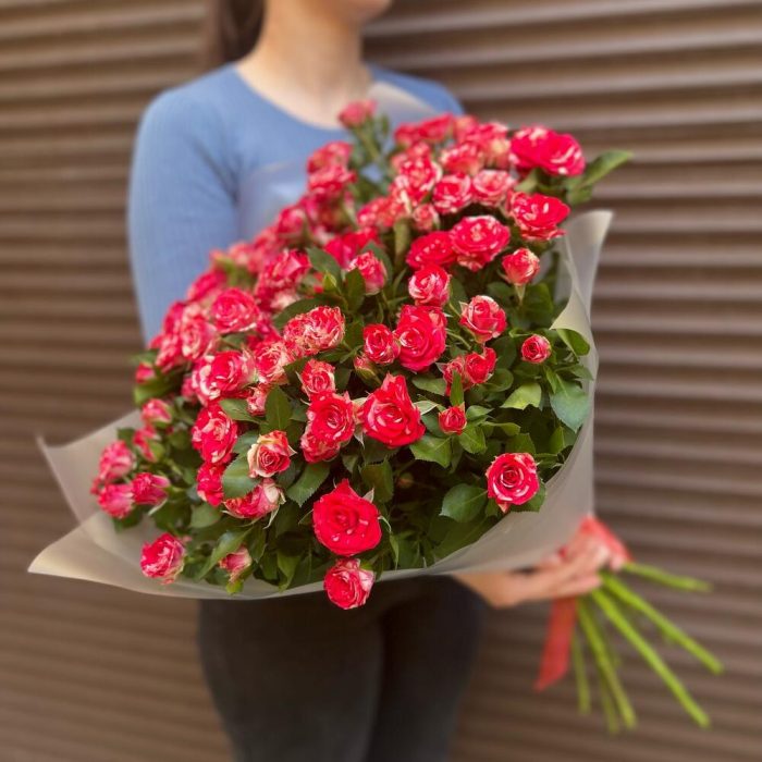 Букет из 15 ярких кустовых роз (моно 052)
