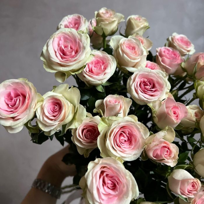 Кустовая роза – 5 шт.Атласная лента – 1 шт.