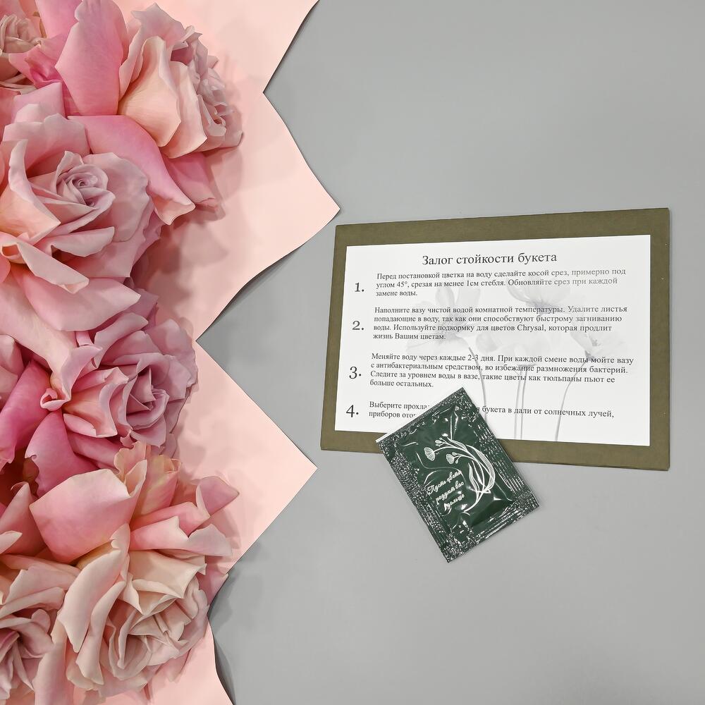 - Сроки возврата: Претензии по качеству букета принимаются в течение 24 часов с момента его получения.