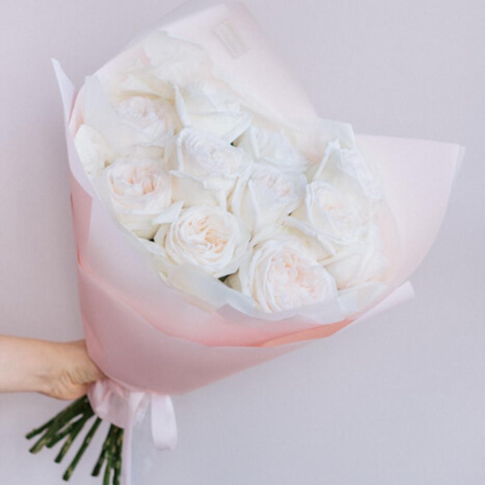 Букет из ароматных крупных пионовидных роз Вайт Охара