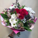 Букет из цикломеновых роз и белой хризантемы бакарди