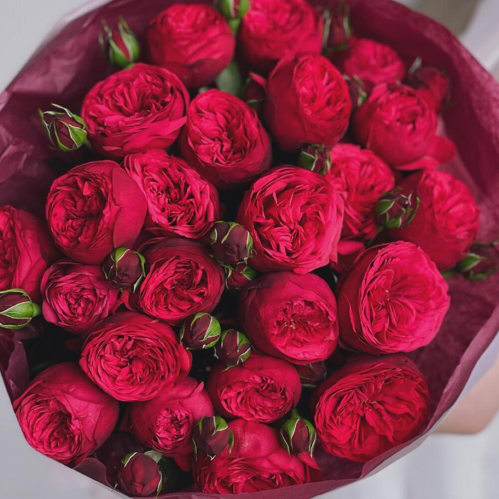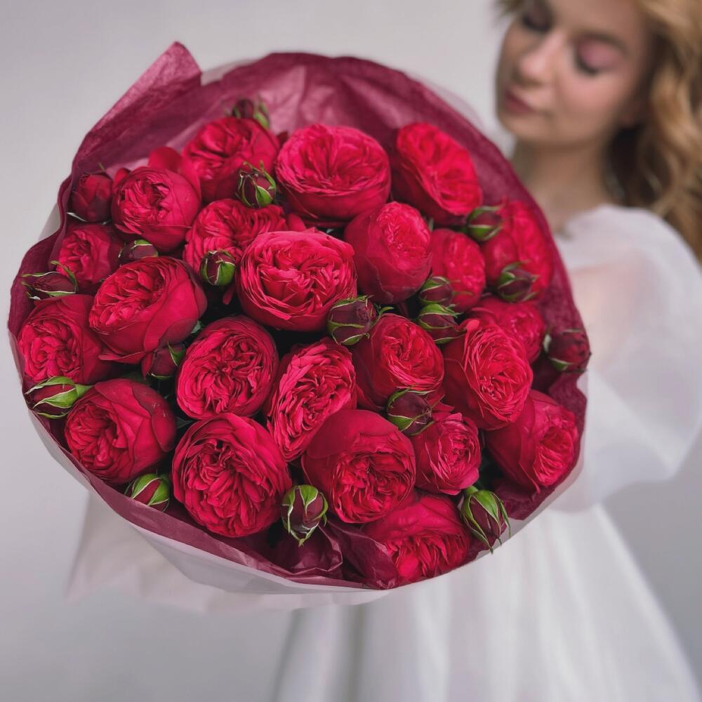 Букет из красных пионовидных роз