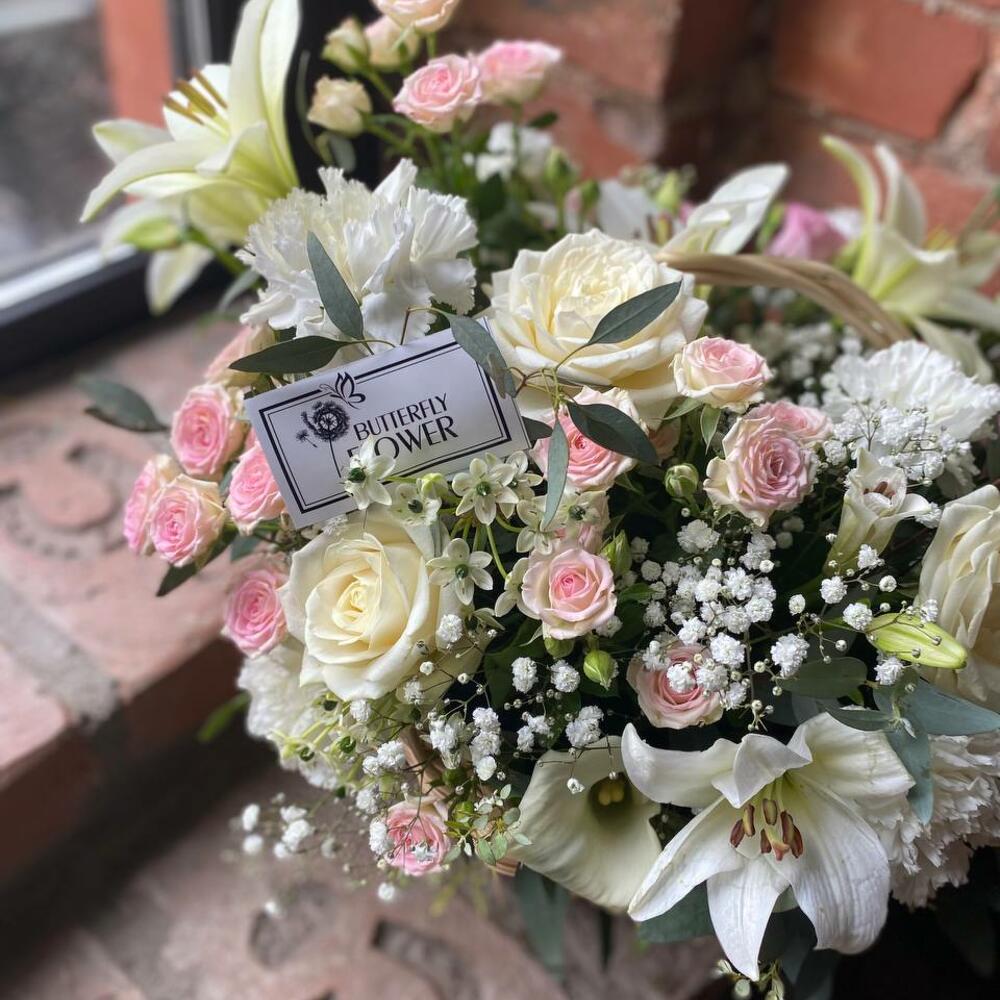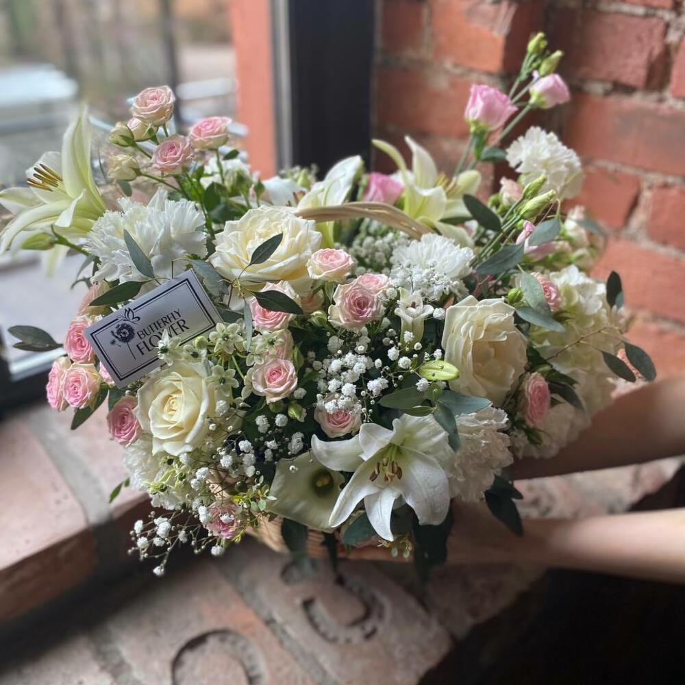 Метки: от 5000 руб, цветы в корзине