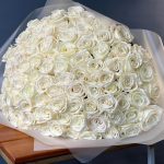 роза пионовидная плая бланка – 99 шт.матовая прозрачная корейская пленка – 4 шт.Лента атласная – 2 шт.
