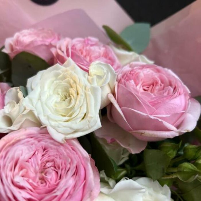 Букет из пионовидных роз с эвкалиптом