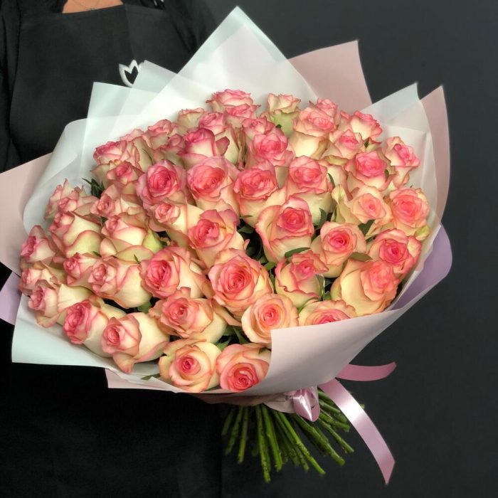 Роскошный букет из 51 розы. Букет 117 ALMOND ROSES