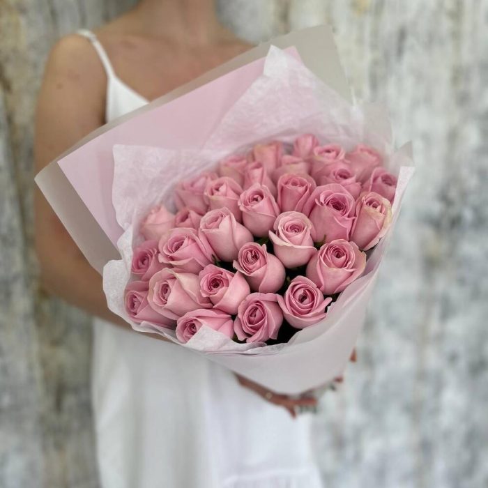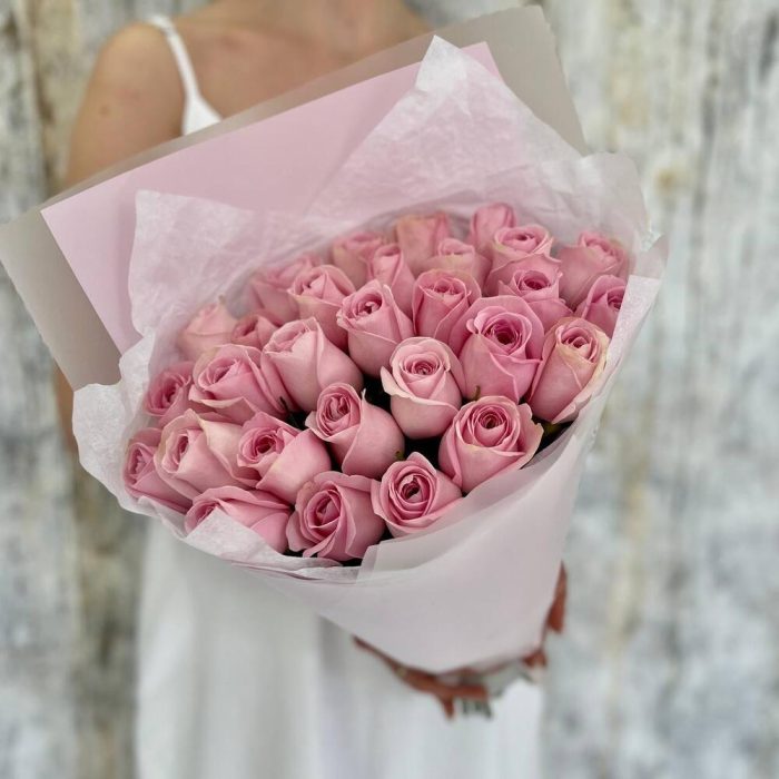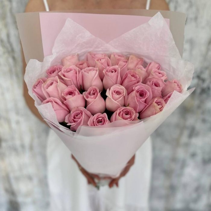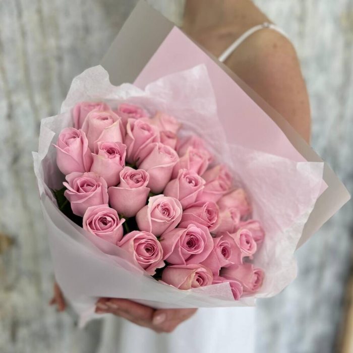Букет из 25 нежно-розовых роз (Кения) 40 см