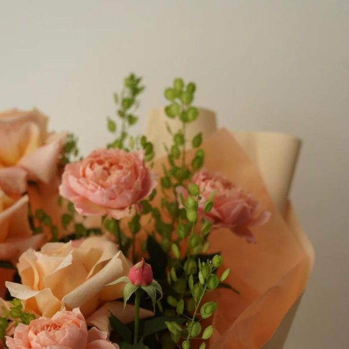 Гринбелл – 5 шт.Упаковка дизайнерская – 1 шт.Роза кустовая julliette – 2 шт.Роза shimmer – 3 шт.
