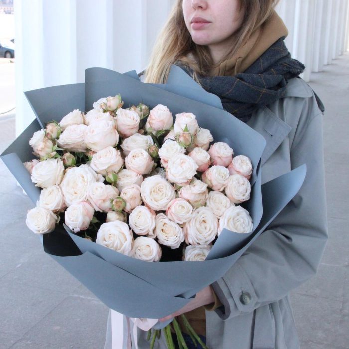Упаковка – 3 шт.Лента атласная – 2 шт.Роза кустовая пионовидная – 13 шт.