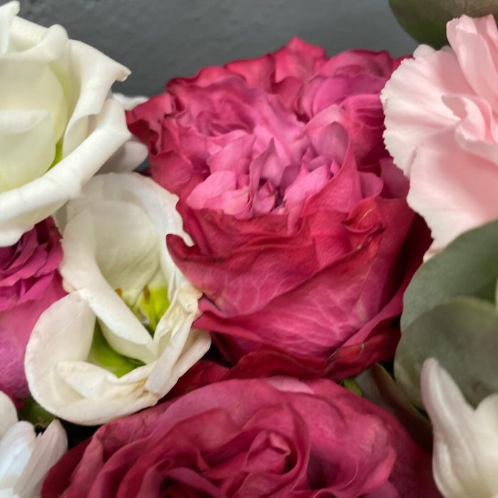 Гвоздики, Кустовые розы, Пионовидные розы, Розы