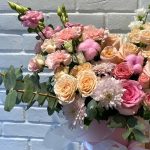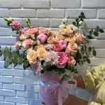 Альстромерии, Гвоздики, Кустовые розы, Лизиантусы, Розы, Хризантемы