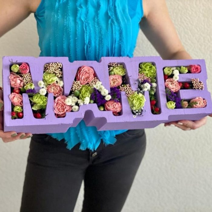 “Атлас☁️” – цветочная композиция с зефиром в деревянном ящике